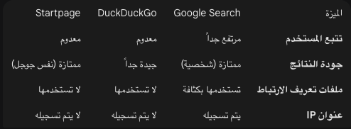 - حجب التتبع: يدمج في نتائجه تقنيات لحجب أدوات التتبع الموجودة على المواقع نفسها.