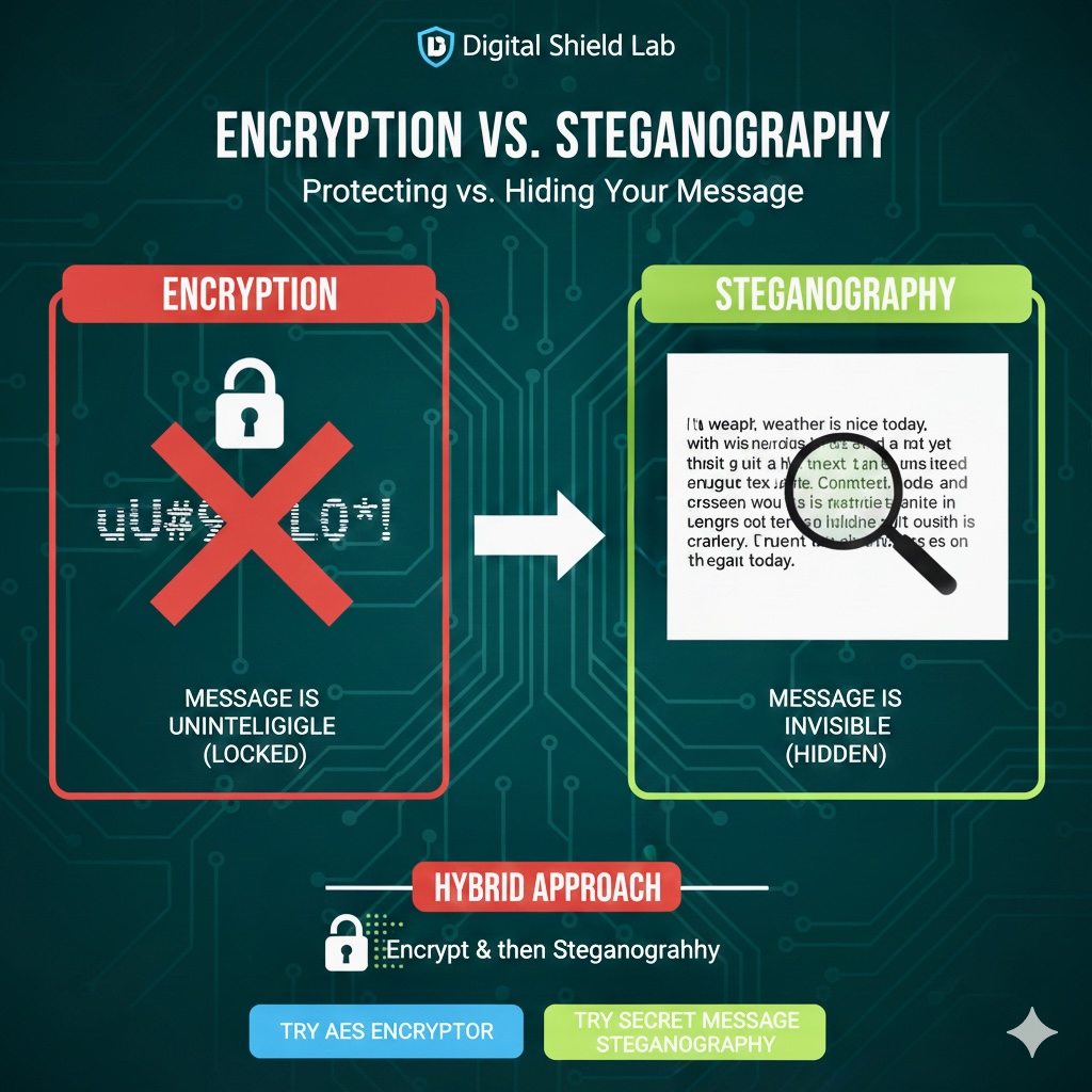 التشفير أم التمويه؟ الفرق بين حماية الرسالة وإخفائها تماماً في عالم الخصوصية، هناك طريقتان لحماية معلوماتك: إما أن تجعل الرسالة